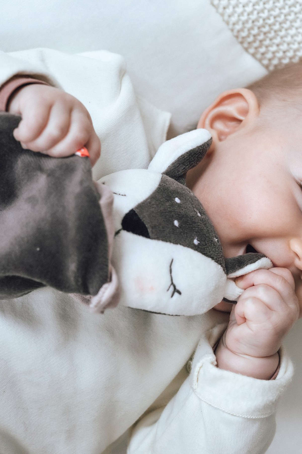 Der Beißring von Kikadu aus der Rehkitz- Kollektion unterstützt Ihr Baby beim Zahnen.
