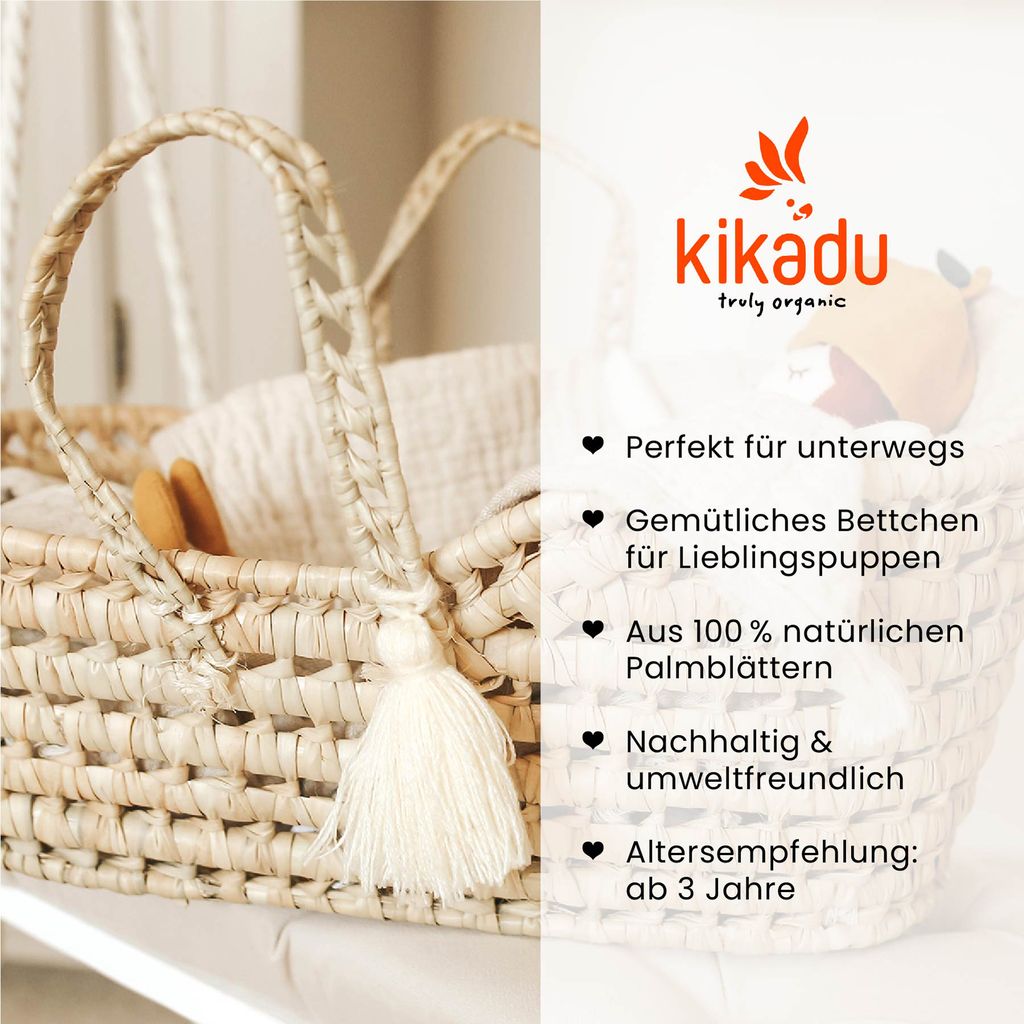 Die Puppen Tragetasche von Kikadu ist perfekt für unterwegs und als Bettchen für die Lieblingspuppe oder das Lieblingskuscheltier.