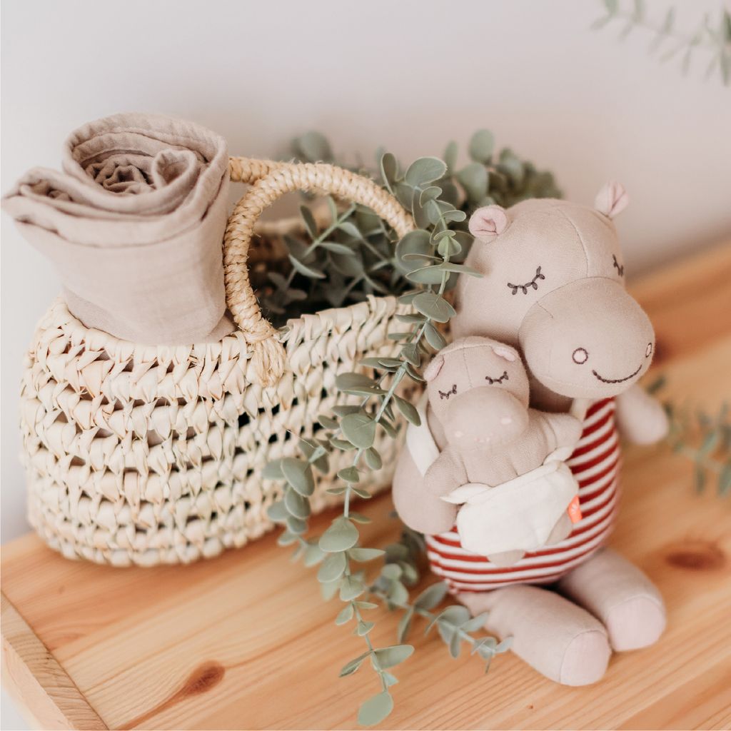 Der handgeflochtene kleine Shopper aus Palmenblatt ist ein charmantes Accessoire, das speziell für spielende Kinder entworfen wurde.
