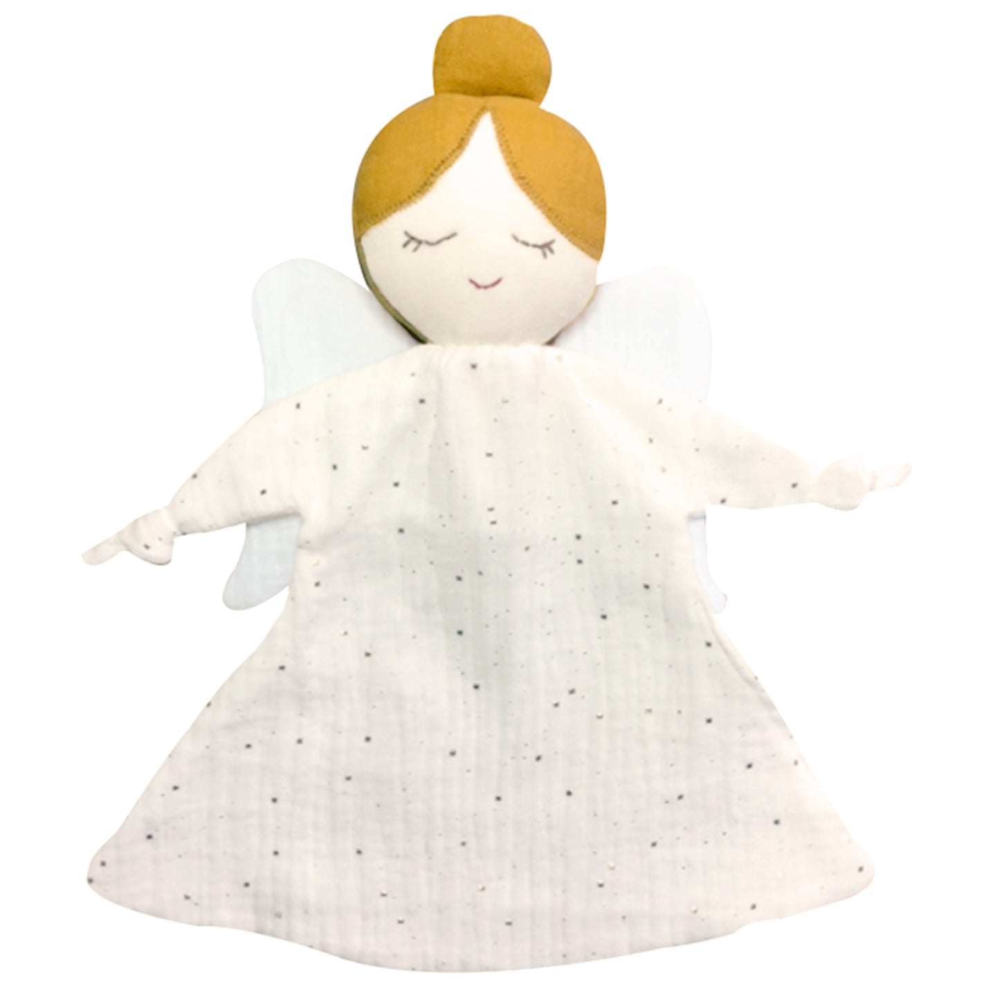 Das zauberhafte Engel-Schmusetuch von Kikadu ist so weich gefüttert, man möchte es einfach nur kuscheln. Die Ärmchen der Schmusepuppe sind besonders für ganz kleine Baby-Hände gut zu greifen. Dieser kleine Engel sorgt für Sicherheit und ein beschützendes Geborgenheitsgefühl für deinen kleinen Schatz. Er ist ein wunderbares Geschenk zur Geburt oder Taufe. Der treue Begleiter ist nicht nur schön anzusehen, er ist auch aus Bio-Baumwolle (GOTS) hergestellt und mit recyceltem Polyester gefüllt und erfüllt nur die höchsten Standards in Nachhaltigkeit und einem fairen Herstellungsprozess. Maße: 28,5x28,5x3,5cm. Altersempfehlung: Ab Geburt. Pflege: Waschbar in der Maschine 30 Grad.