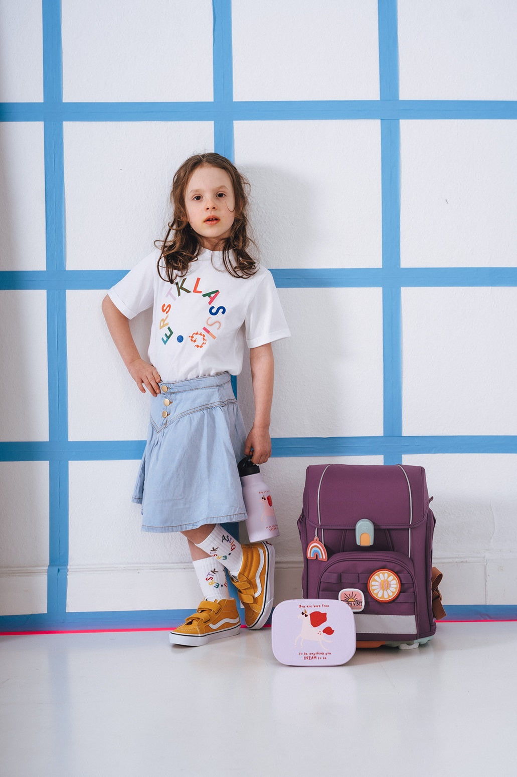 Weitere Begleiter für Schulanfänger erhältlich: - Trinkflasche: Robust aus Edelstahl - Brotdose: Aus Edelstahl mit 3 Fächern - Tennissocken: Bequem aus GOTS zertifizierter Bio-Baumwolle Bereite dein Schulkind mit diesem niedlichen Set auf die Schule vor – praktisch, modisch und nachhaltig.
